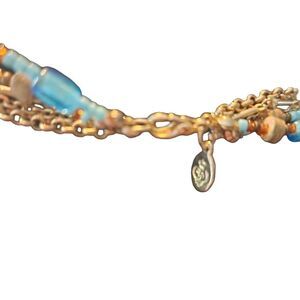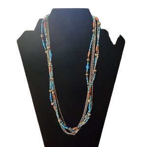 Premier Designs Multi-Strand Gold, Blue, & Orange Beaded Necklace