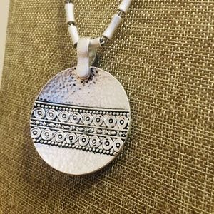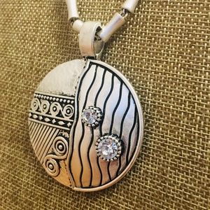 Like new; will be sent in original packaging. Antique silver finish is so versatile! Reversible AND removable pendant that can be added to an other chain you own. Extender for maximum adjustability!