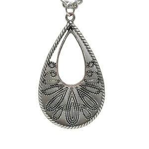 Premier Designs Openwork Teardrop Pendant Chain Necklace Silver Tone Vintage