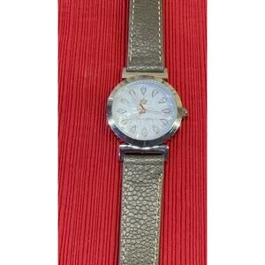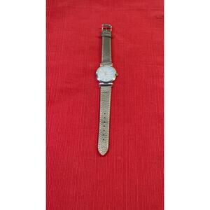 The Premier Designs PP1287 Women's Watch features a sleek 35mm silver stainless steel case with a silver bezel and a white dial adorned with arrow markers and round indexes. This stylish timepiece comes with a reversible band in brown and turquoise green leather, offering versatility in matching different outfits. Designed for both formal and casual wear, this quartz watch includes luminous hands, a 12-hour dial, and is water-resistant up to 30 meters. This watch has been tested and does work but will need a new battery.