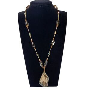 Premier Designs Prism Pendant Necklace Gold Glass Prism Beads Vintage Chunky 14 inches.