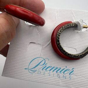 Bold red and gold earrings with unique texture. Ideal for a stylish statement.