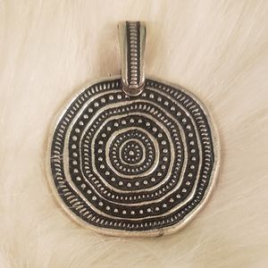 Reversible Pendant. Silver one one side and the other has opalescent blues/greens. Top of Pendant clamps open toc change.