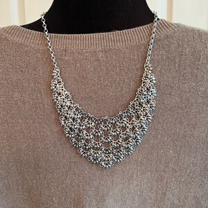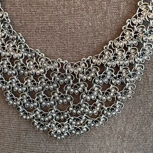This stunning silver statement necklace adds a touch of elegance to any outfit. Perfect for special occasions or everyday wear.