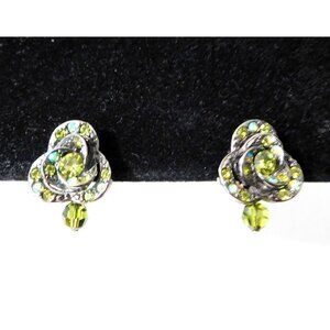 Premier Designs Sage Blossom Earrings Green Crystals Bead Accent Dual Clip Post