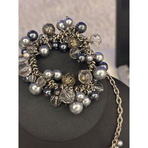 Premier Designs Silver Chain Necklace & Bracelet Set With Clear & Gray Beads