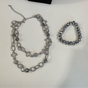 Premier Designs Silver Necklace with Black and Gray Cross Accents