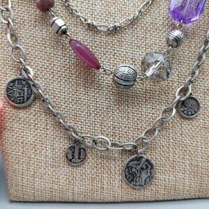 Premier Designs Silver Tone Purple Multi Strand Layered Chain Coin Necklace 32"