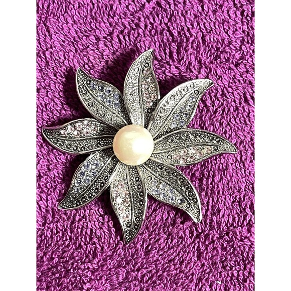 Premier Designs Starburst Pearl Sparkle Silvertone Pin Brooch