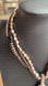 This multi-strand necklace features black, champagne, and gray beads with a unique snakeskin pendant. It's perfect for adding a touch of elegance to any outfit.
