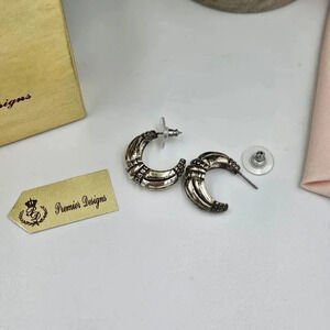 Premier Designs Vintage Silvertone Antique Look Crescent Shape Earrings