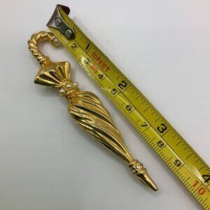 Premier Designs Vintage Umbrella Faux Pearl Rhinestone Gold Tone Brooch Pendant