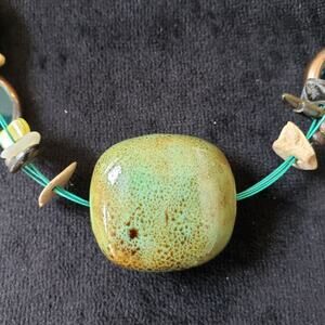 Premier Designs Women Ocean Girls Ceramic Glass Green Blue Bead Retired Necklace.