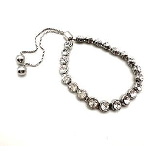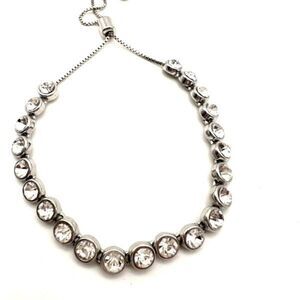 Imitation rhodium plated, crystal, 5 1/2"-10" bracelet with adjustable sliding closure (