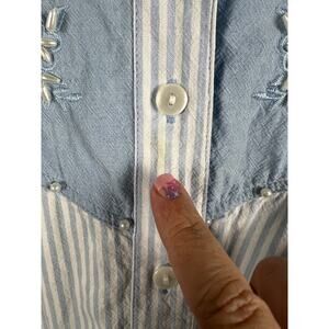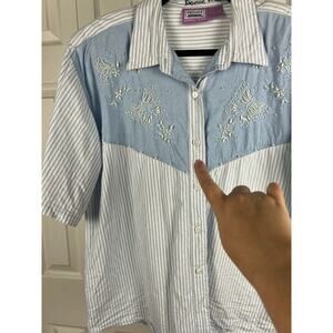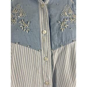 80s denim top, 80s denim blouse, striped blouse, butterfly top, floral top, embroidered top, boho, bohemian, western, rodeo, retro, vintage, cottagecore, fairycore,