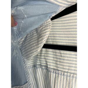 Premier International Blue Striped Denim Faux Pearl Butterfly Embroidered Top 2X