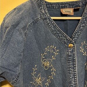 Chic denim top featuring elegant embroidery. Perfect for casual outings.