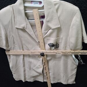 Premier International Womens Button Up Khaki Size Large Rayon Blend Short Sleeve