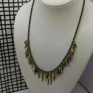 Premier Jewelry necklace with dark beads and gold, purple and white dangles.