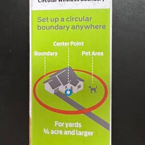 Brand-new in box Premier Pet GPS dog fence circular wireless boundary collar. Keep your pet safe with a wireless fence at home or on vacation with this dog fence collar. With a GPS-powered circular boundary that can cover yard sizes of 3/4 acres or more, this offers a flexible, reliable and user-friendly way to ensure your dog stays within the limits you set. The setup is easy, with all configurations set directly on the collar’s LCD screen. There is no need for apps or a subscription. This also includes correction-free re-entry, so your dog can return into their boundary without any static correction. Choose between 3 levels of correction: tone & vibration, small-dog static, or large-dog static. This water-resistant rechargeable collar is ready for all-day adventures with a battery life of up to 24 hours. This collar fits neck sizes 12-25 inches, and is intended for dogs above 20 pounds and 6 months of age. Give your dog the freedom to play and explore, while you enjoy peace of mind knowing they’re safe!