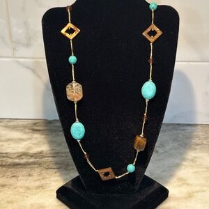 Premier Promenade NECKLACE Turquoise Shell Tigers Eye 30" + 3" NEVER WORN