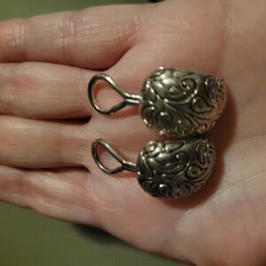 Elegant silver clip-on earrings with intricate design. Perfect for any occasion.