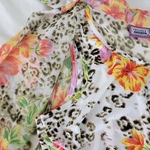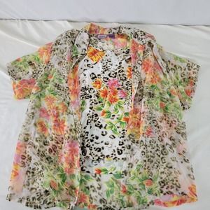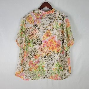 Premier Womens Shirt Large Top Floral Short Sleeve Button Down Lined Sheer