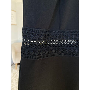 This PremierAmour black sleeveless dress features intricate lace detailing at the neckline and waist, offering a sleek yet sophisticated silhouette. Crafted from a 95% polyester and 5% spandex blend, it’s perfect for both casual and formal occasions with its stretchy, comfortable fit.