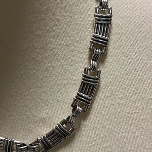 This elegant silver necklace adds a touch of sophistication to any outfit. Perfect for any occasion.