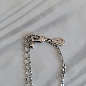 This elegant round cut cubic zirconia diamond pendant is circled by smaller round stones and decorated bail. It comes with an 18" chain but can be adjusted smaller. Great pre-owned condition with normal signs of use.