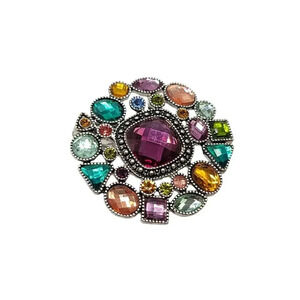 Premiere Designs Multicolor Circle Brooch Pin Pendant Silver Tone 2" Large