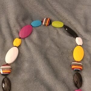 Womens Multi Colored Necklace. Multi Faceted Fuschia, Lime Green, White, Blue and Black Colored Beads. Used on good condition.