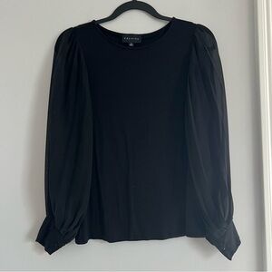 Premise Black Blouse with Puff Sleeves and Relaxed Fit