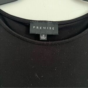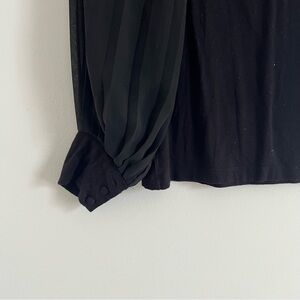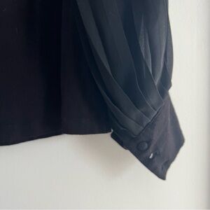 This elegant black blouse by Premise features stylish puff sleeves that gather at the wrists, adding a touch of femininity. The relaxed, boxy silhouette offers a comfortable fit, making it a versatile piece for any occasion.