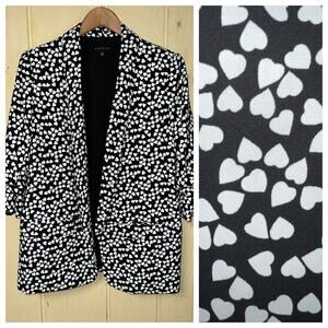 Premise Blazer Jacket Womens Large 12 Heart Print Ruched Elbow Valentine's Day