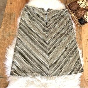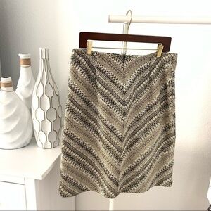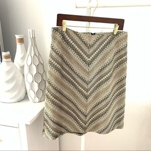 Premise Cream Tan and Gold Metallic A-Line Skirt. Size 8
