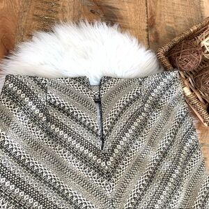 The fabric is a stunning large nubby thread black, cream and gold metallic skirt.