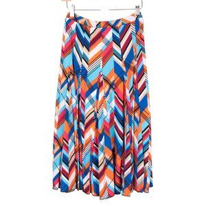 Premise Flare Skirt M Womens NEW Chevron Pink Orange Blue Elastic Waist Midi