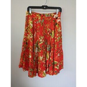 Premise Fluted Floral Colorful Orange Flowy Linen Blend Skirt Womens 8