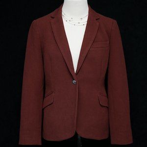 Practically brand new high quality blazer. Heavy in weight. Color varies depending on screens. Its not quite burgundy yet not quite brown.