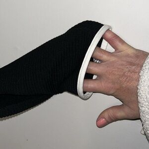 This Premise top is a cross between a cardigan and a blazer with white piping and zippered pockets.