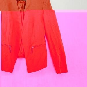 Premise Orange Red Open Front Zip Pockets Business Casual Office Blazer P4713