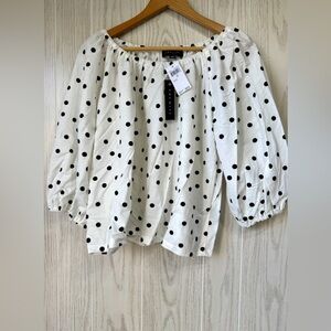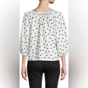 Add a touch of playful elegance to your wardrobe with this charming Polka Dot Top, size Large, new with tags. Crafted from soft pique fabric, this delightful top combines comfort and style effortlessly. Its subtle polka dot pattern brings a classic yet contemporary flair, perfect for casual outings or semi-formal gatherings.