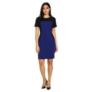 Premise Sheath Dress Black Blue Colorblrock Sz 8 NWT Short Sleeve Career