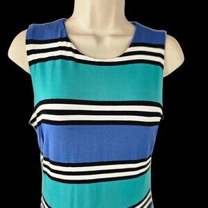 Premise Sleeveless Rayon Knit Midi Sheath Horizontal Blue Stripes Womens L