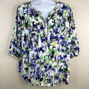 Premise Studio POPOVER Tunic Top Womens 2X Multicolor 3/4 Sleeve ARTSY Work