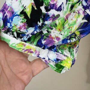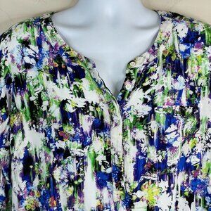 FANTASTIC PRINT! Lively colors and lightweight. Slightly balloon sleeves...Gently Pre-owned condition. See pictures for item condition. Smoke-free home. ***Please, note that computer monitors can skew the colors of the actual item.