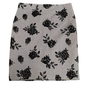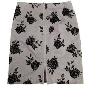 Premise Studio Pencil Skirt Embroidered Floral Length Gray Womens Size 10