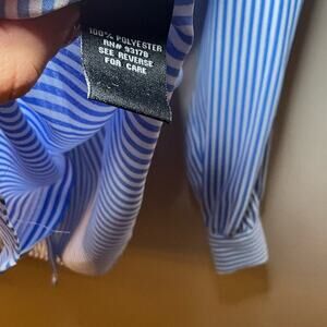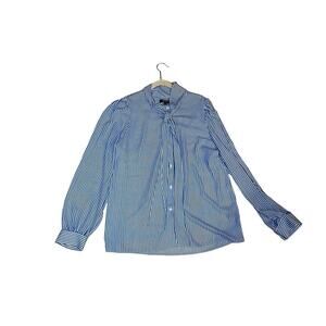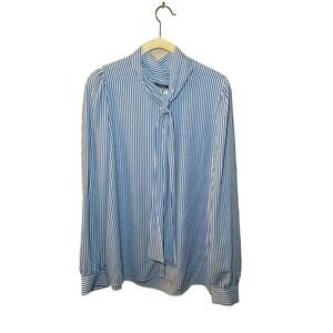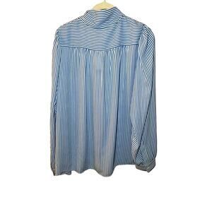 Premise Studio Shirt Women Large Blue Striped 100% Polyester Tie Neck Button-Up.