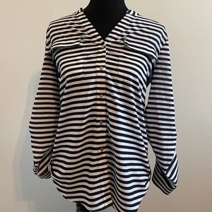 Funky striped blouse with Gold accented buttons. Great professional top. Lightly worn.